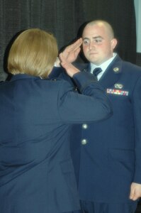 At 2pm Saturday April 10, TSgt. Lisa A. Williams, non-commissioned officerin charge(NCOIC) of Commanders Support Staff(CSS), 64th Air RefuelingSquadron (64 ARS), 22nd Operations Group, here at Pease AirNational Guard Base, re-enlisted for another four years of service in theAir Force. She was sworn