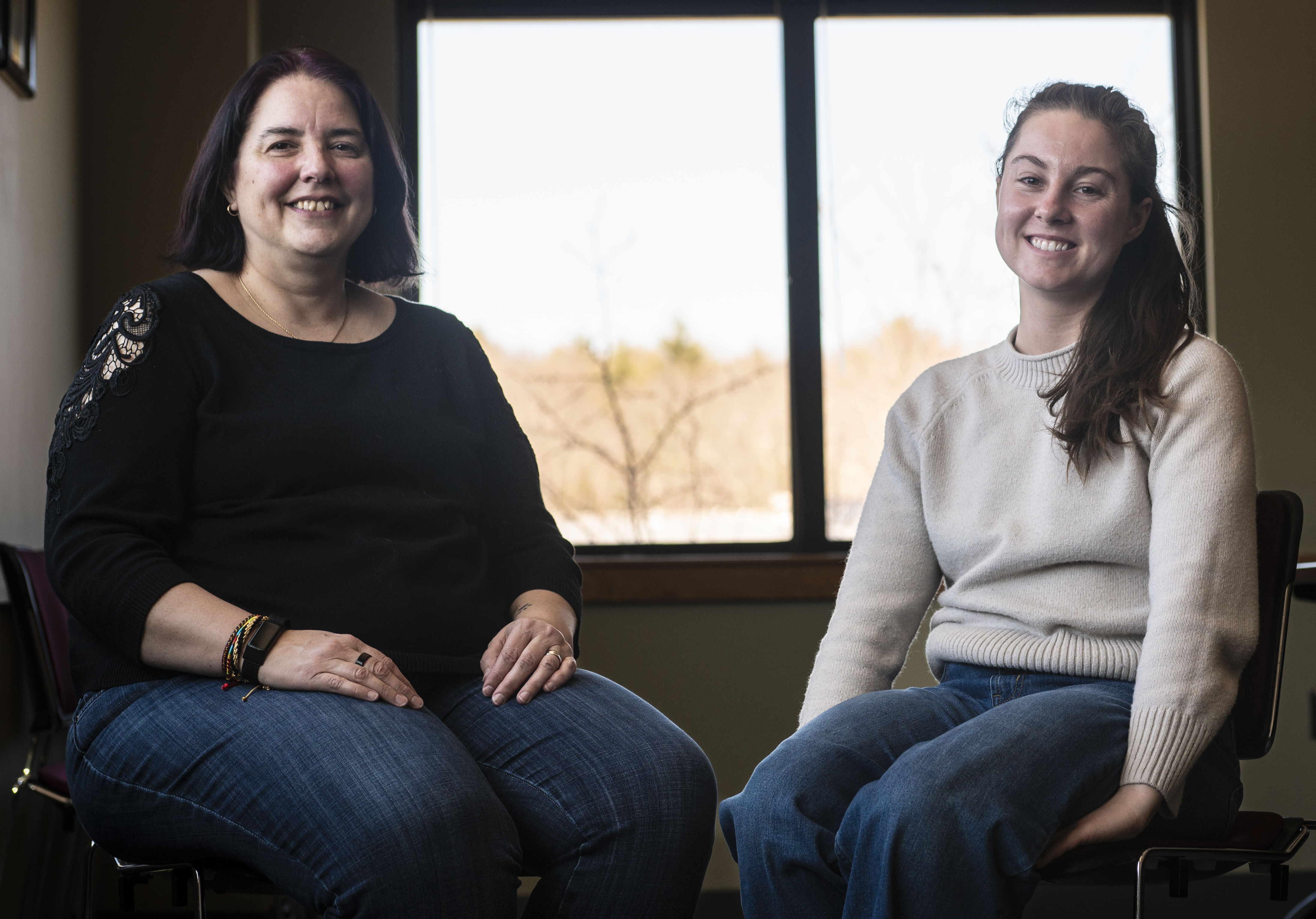 Susan Baldwin, Sexual Assault Response Coordinator from the 157th Air Refueling Wing and Emily Crall, Lead SARC from the New Hampshire National Guard, pose for a photo at Pease Air National Guard Base, New Hampshire, March 10, 2026. Together, they ensured Airmen and Soldiers were supported during challenging personal and professional times. (U.S. Air National Guard photo by Tech. Sgt. April Jackson)
